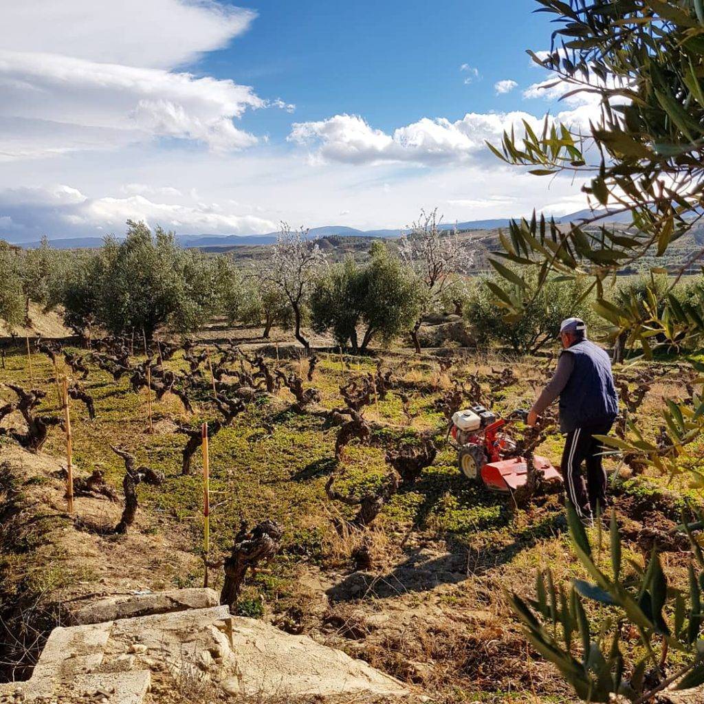 Trabajamos la viña de forma tradicional, ecológica y regenerativa. Buscando mantener los suelos en equilibrio, y llenos de vida.